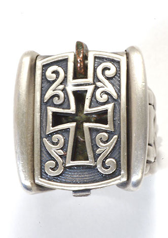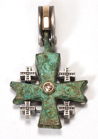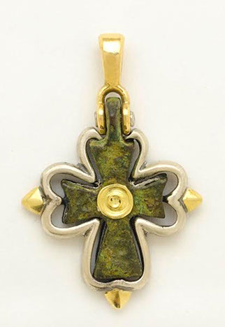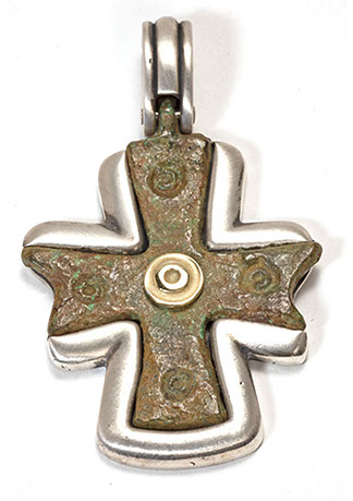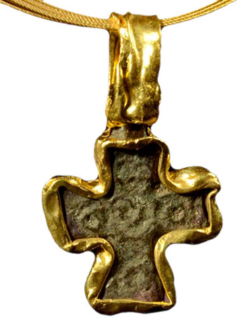 hese magnificent Byzantine crosses have been found in the ancient Holy Land in archeological digs and shipwreck dives. The cross frame is encrusted in sterling silver, 18k gold, diamonds, sapphires, or precious stones. They are crafted so that the integrity of the cross is kept as a valuable archeological treasure. It is a work of art with a historical and spiritual connection to the period when the crosses were cast. There are various designs to choose from; all are hand-made authentic pieces. The crosses are not altered in any way and kept intact within the design. This beautiful and timeless piece of early Christian history is a rare and unique opportunity and surprisingly affordable. Order yours today or we can help you create your own original design. The supply of crosses is extremely limited. A certificate of authenticity is supplied with your original Byzantine Cross.